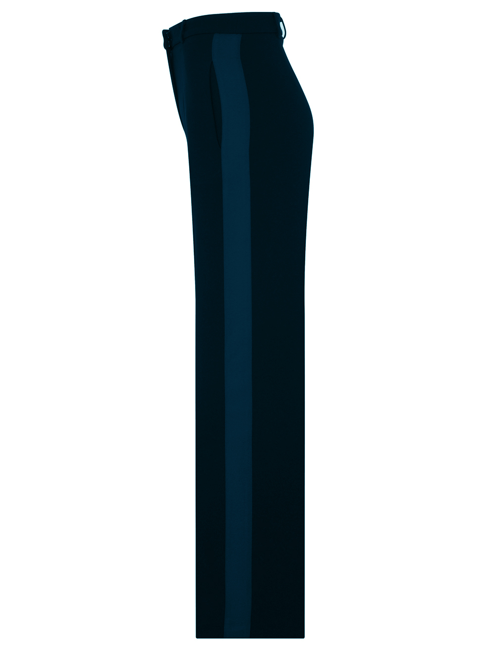 Yüksek Bel, Geniş Paça Yanları Şeritli, Cepli Pantolon